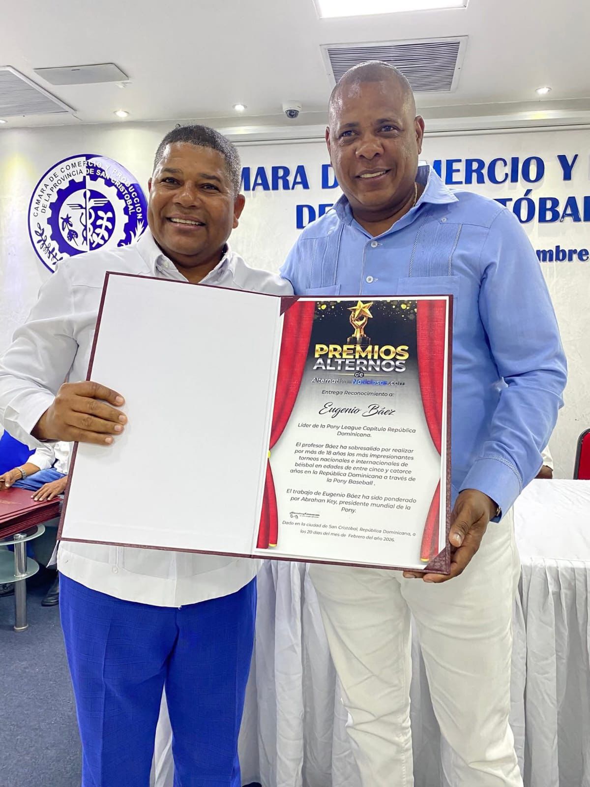 En el marco de la celebración de los Premios Alternos San Cristóbal, realizados el viernes 20 de febrero, fue reconocido el destacado dirigente deportivo y empresario Eugenio Báez, presidente de Pony Dominicana Baseball.