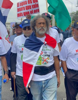 Los manifestantes recorrieron varios kilómetros a lo largo de la autopista Duarte, lo que provocó una considerable congestión vehicular, mientras portaban banderas y pancartas con mensajes de rechazo a la actividad minera.