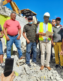 Montás observó las demoliciones en la explanada y parte trasera de la instalación en donde funcionaron diversos establecimientos comerciales.