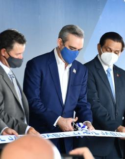 Bajos de Haina, República Dominicana.-El ministro de Salud Pública, doctor Daniel Rivera acompañó al presidente Luis Abinader quien participó en el acto inaugural de la ampliación de la planta de producción Jabil Regulated Industries, que producirá en el país, los primeros kits de pruebas PCR rápidas para detectar el coronavirus, avaladas por la FDA de los Estados Unidos.